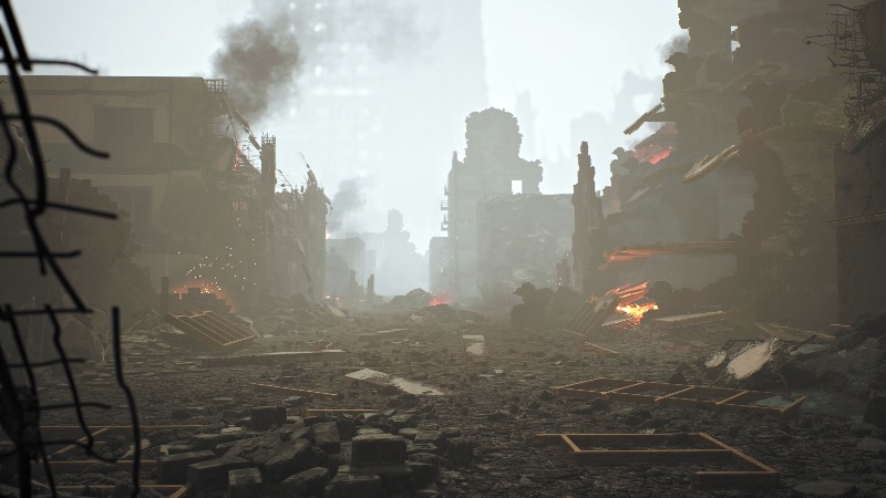 Craft post-apocalyptic scenes of ruins and rugged landscapes